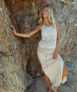MOLLY BRACKEN Women’s Molly Bracken Long Crochet Skirt | Golden Beige