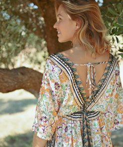 MOLLY BRACKEN Women’s Molly Bracken Asymmetrical Dress At The Bottom, Tropical Print | Khaki Kala