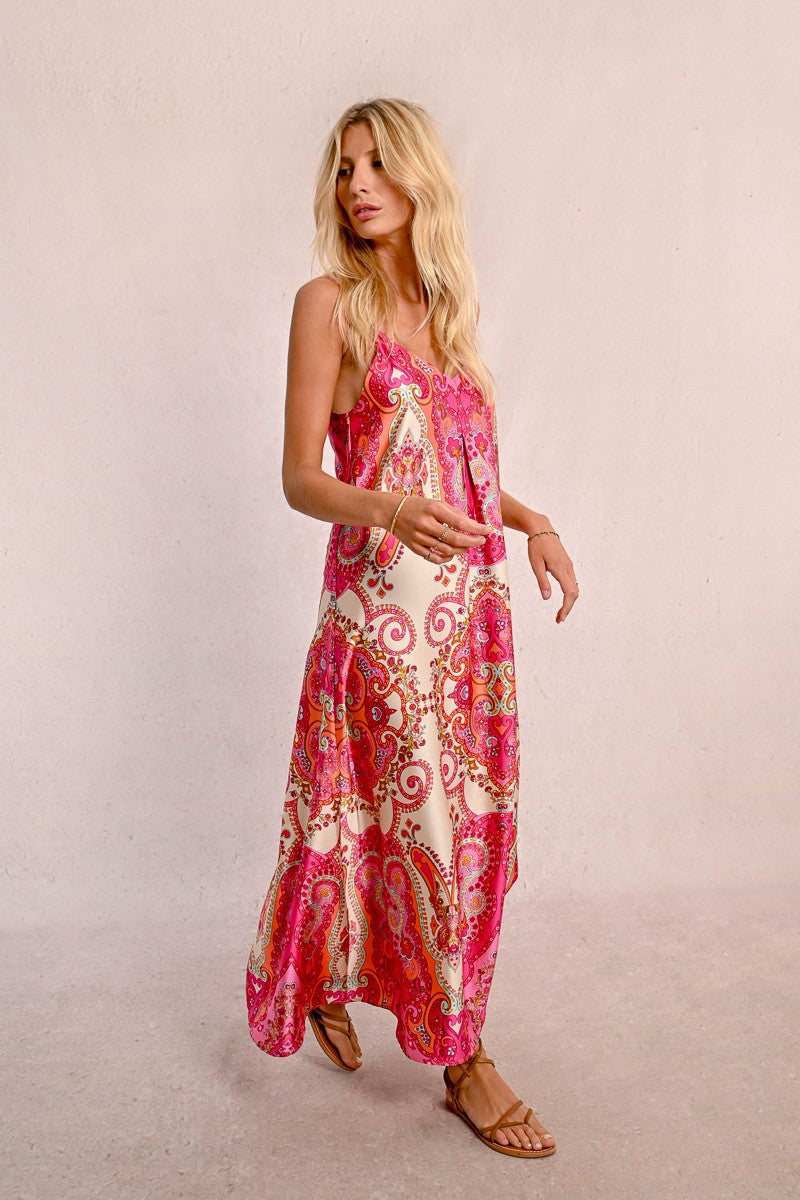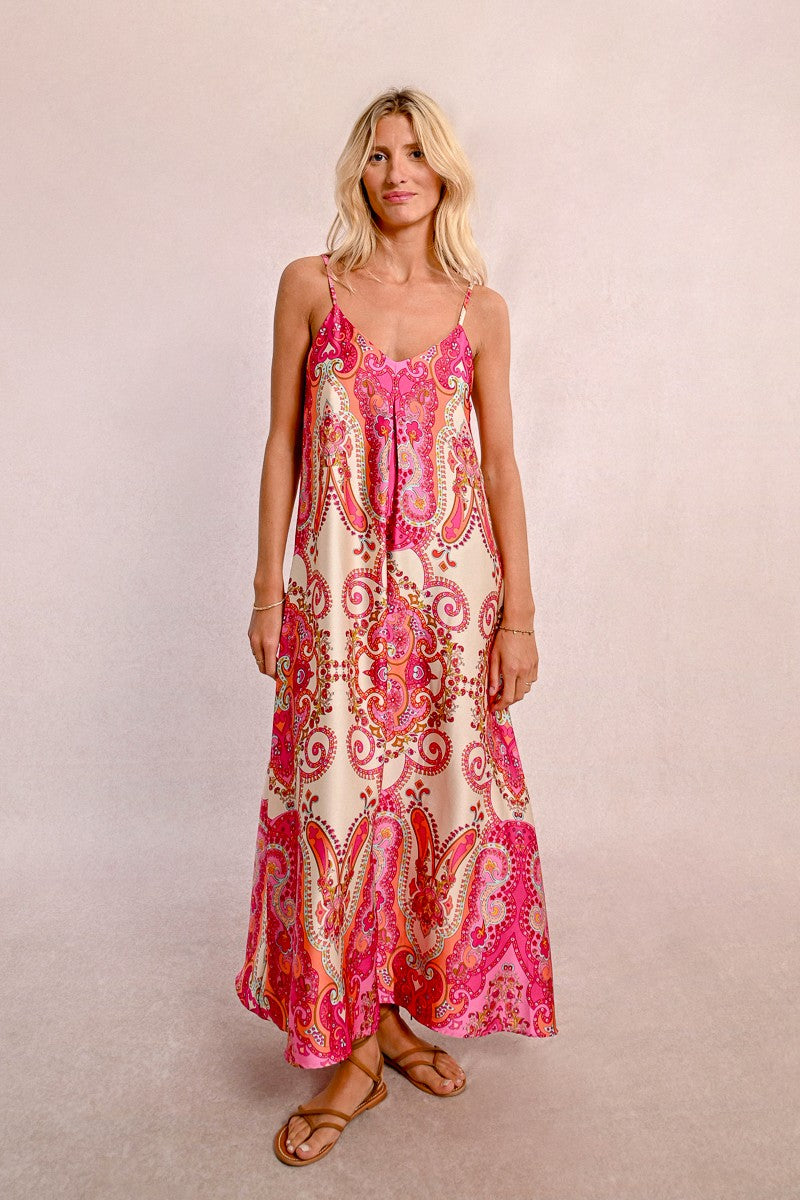 -Long satin dress