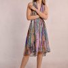 Chic, flattering one-piece swimsuit with striped Lurex texture and thin straps.