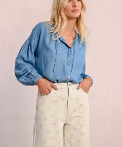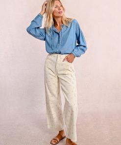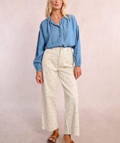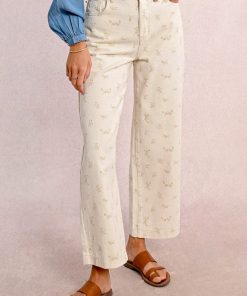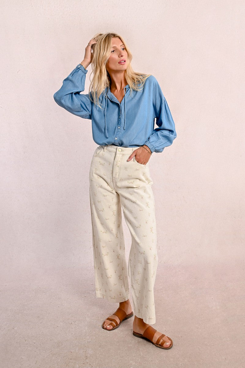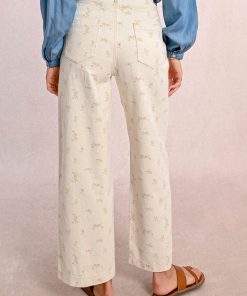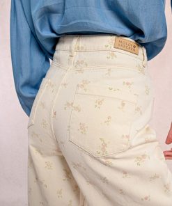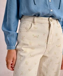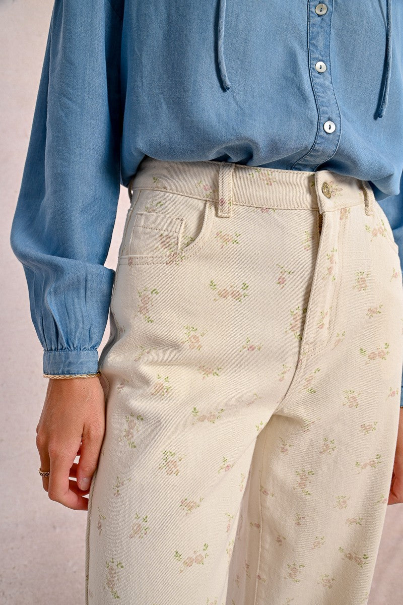 -Straight pants with floral pattern